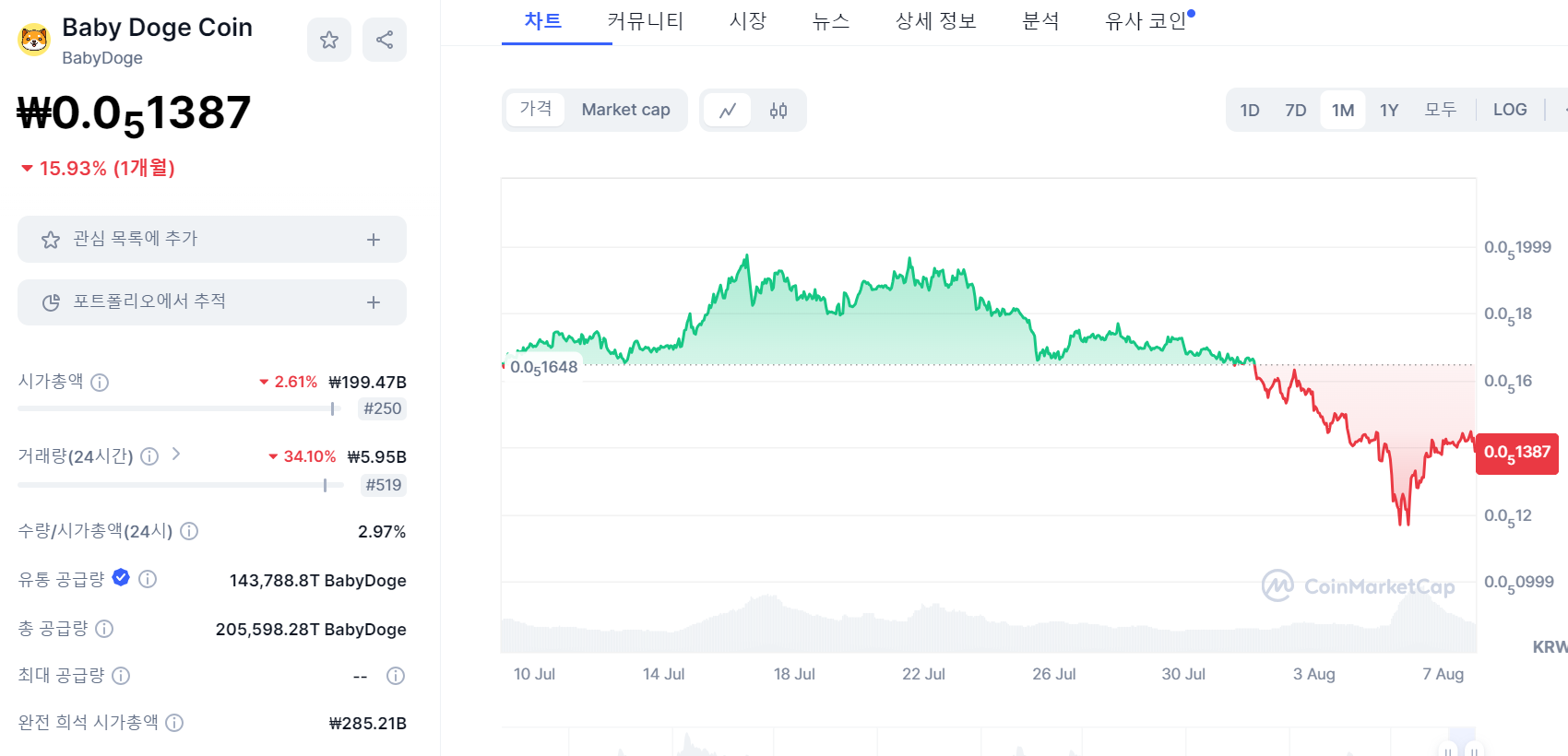 1. 베이비도지 코인 최근 시세 동향