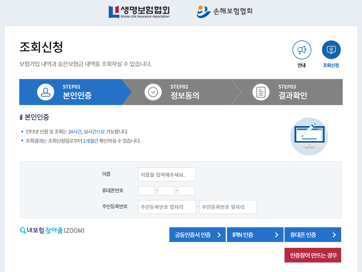 1. 숨은 보험금 찾기 - '내보험 찾아줌' 조회하기 🔍💰