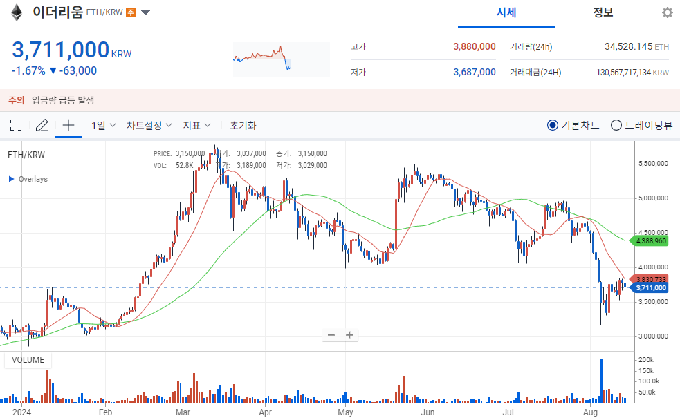 - 이더리움의 가격 변동: 이더리움은 하반기 최고가인 약 500만 원에서 약 36% 하락했습니다. 이는 매우 큰 하락폭으로, 투자자들에게 불안감을 안겨주고 있습니다.