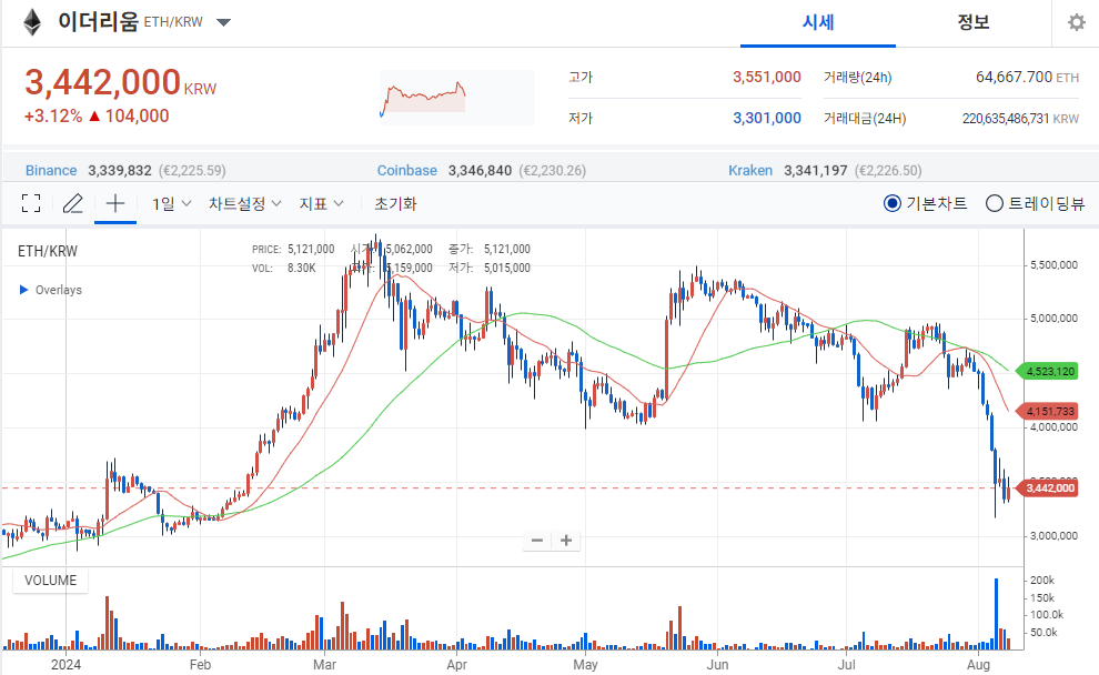이더리움은 최근 일본의 삽재와 같은 외부 요인으로 인해 큰 폭의 하락세를 보였습니다. 그러나 현재 이더리움의 유입량이 증가하고 있다는 점은 향후 상승세를 예고하는 신호로 풀이됩니다. 특히, 이더리움의 가격이 300만 원까지 하락한 이후 추가적인 하락은 어려울 것으로 예상됩니다.